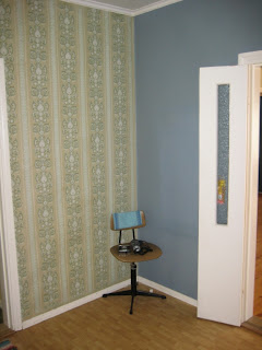 The picture above shows the hall on the day we first came to look at the house. Behind the greenish retro wallpaper, are two old-fashioned 50's kitchen cupboards, the built-in floor-to-ceiling-kind. These were used to make room for a bathroom.